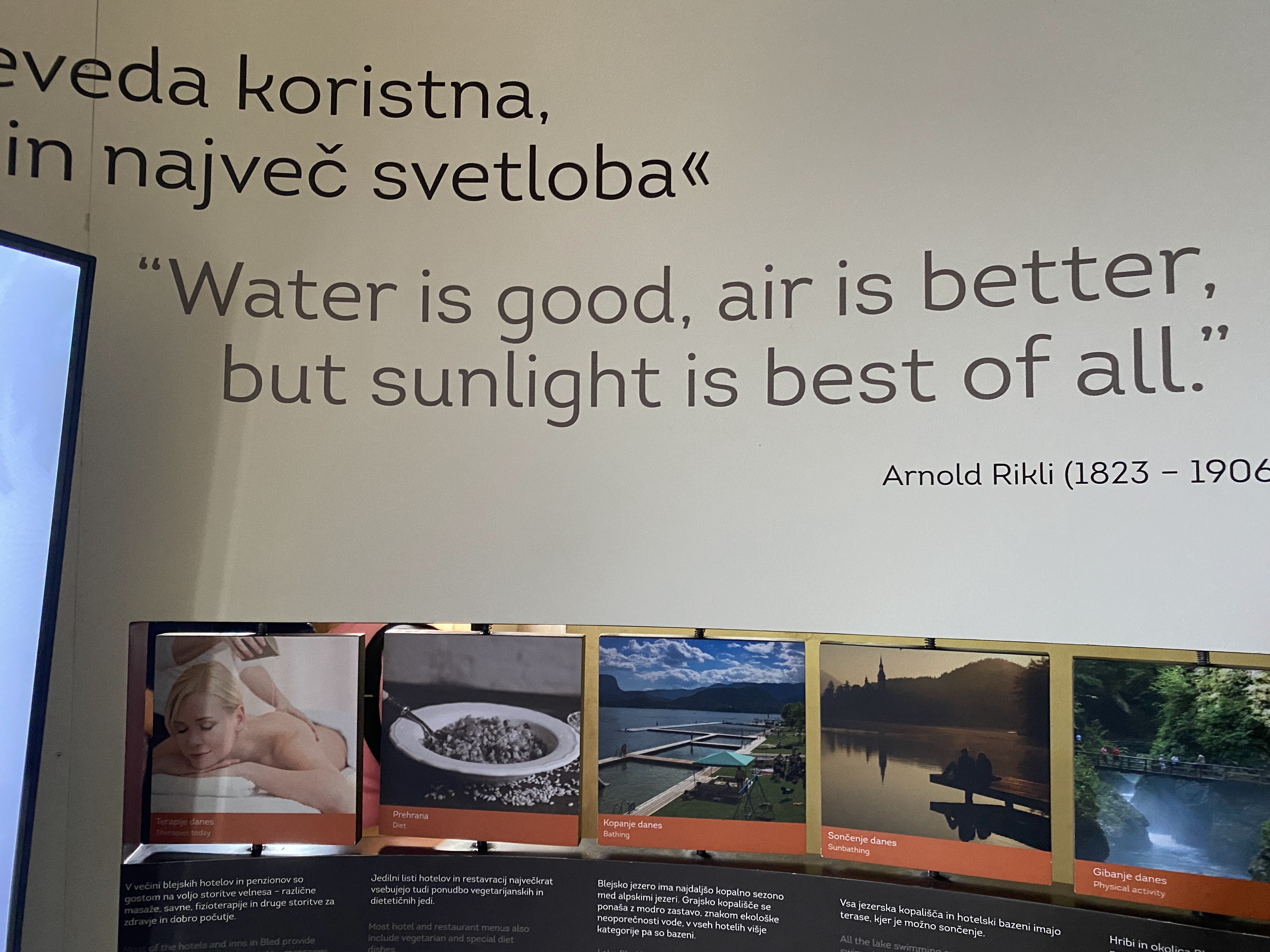 Painting in Mayor’s Office and Bled Tourism Office Arnold Rikli 1823-1906Arnold Rikli BustArnold Rikli PictureArnold RikliBest picture of Arnold Rikli 1823-1906Arnold and Marie in Triest, Italy 1864Arnold Rikli in Triest 1868Marie (Landerer) Rikli in Triest 1868Arnold Rikli in Triest 1870Arnold’s Healing ClinicLake Bled with Bled Castle in NE Corner of Lake Bled, City of Bled East of LakeBled Castle Arnold Rikli RoomArnold Monument on NE side of Lake BledOld Bathtub from Arnold’s Healing ClinicArnold’s Bathtub in Arnold Rikli Room in Bled CastleIsland Church Lake BledEarly morning hikes and mid-day sunbathingArnold Rikli Leads the WayBoats on Lake Bled